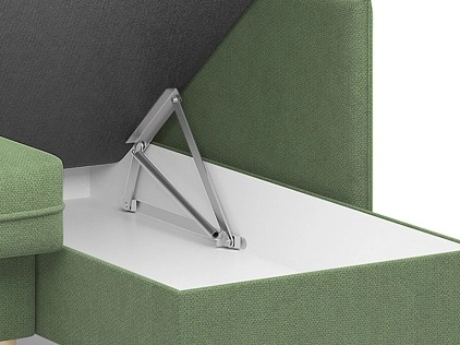 Короб для хранения из белого ЛДСП расположен в основной секции и в оттоманке. Глубина 17 см является достаточной для комфортного хранения спальных принадлежностейподушек от дивана и прочих необходимых вещей.